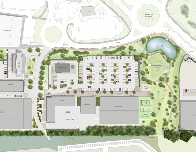 The Cribbs Causeway Retail Park is one of the UK’s largest and most successful regional shopping centres and includes over 140 leading shops, cafes and restaurants and a cinema complex. The Cribbs Site 20 project includes a sports focused expansion to the facilities including indoor skydiving, a Skiplex centre and a range of additional sports retail stores.